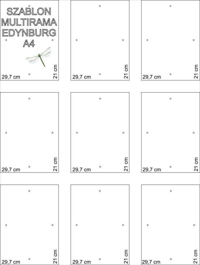 Szablon rzeczywistej wielkości 1:1 sprawia, że bez problemu można odtworzyć prezentowany układ ram, bez potrzeby żmudnego procesu mierzenia i poziomowania.