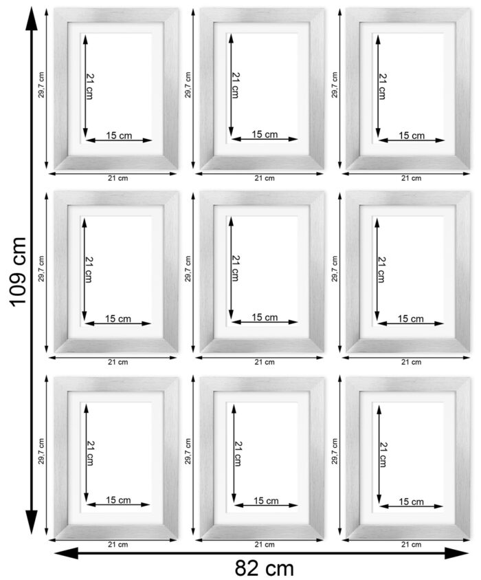 - 9 ramek A4 z passe partout na zdjęcia 15×21