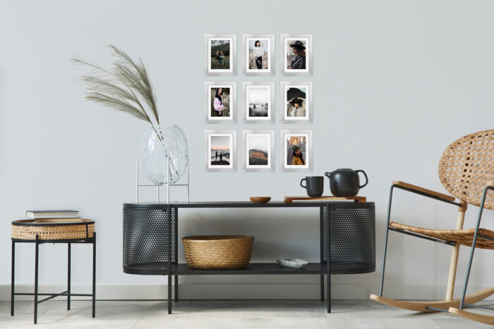 Wystarczy że powiesisz szablon na ścianie, zamocujesz kołki w wyznaczonym miejscu i gotowe – masz idealnie równą, gotową galerie ścienną!