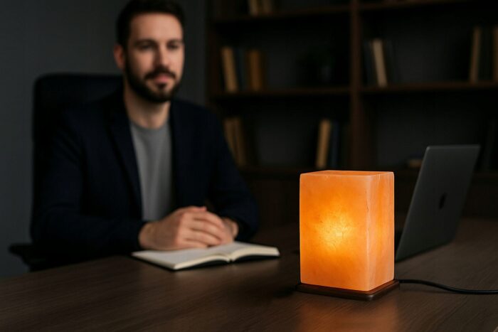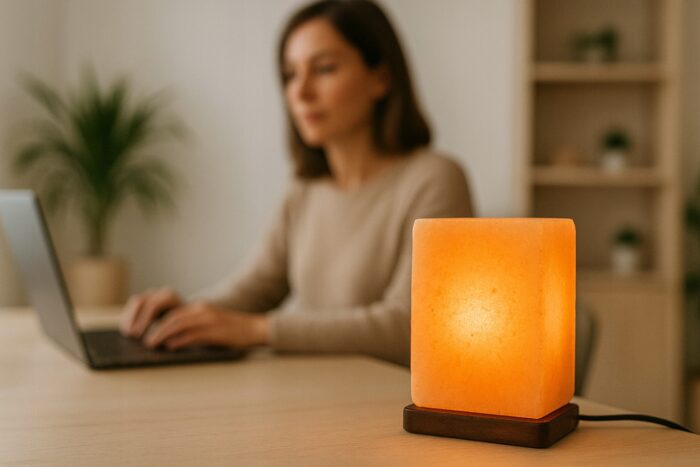 ✅ Jonizacja powietrza – sól himalajska w połączeniu z ciepłem żarówki wydziela jony ujemne, które mogą redukować wpływ jonów dodatnich emitowanych przez elektronikę (telewizory, laptopy, Wi-Fi).