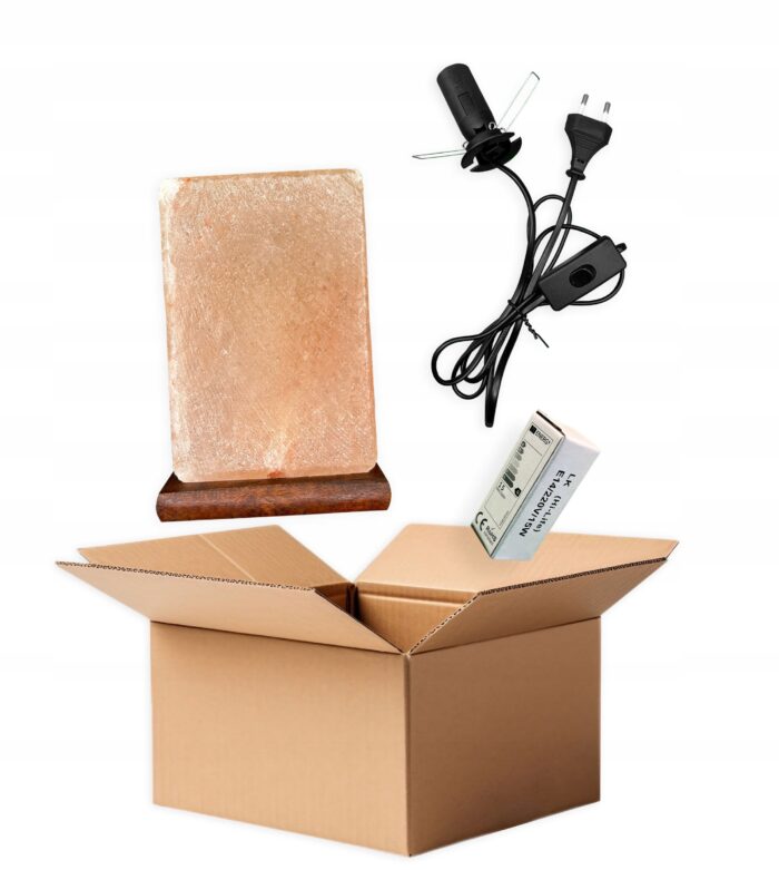 - ✅prostokątną lampę z naturalnej soli himalajskiej na drewnianej podstawce 3-4kg