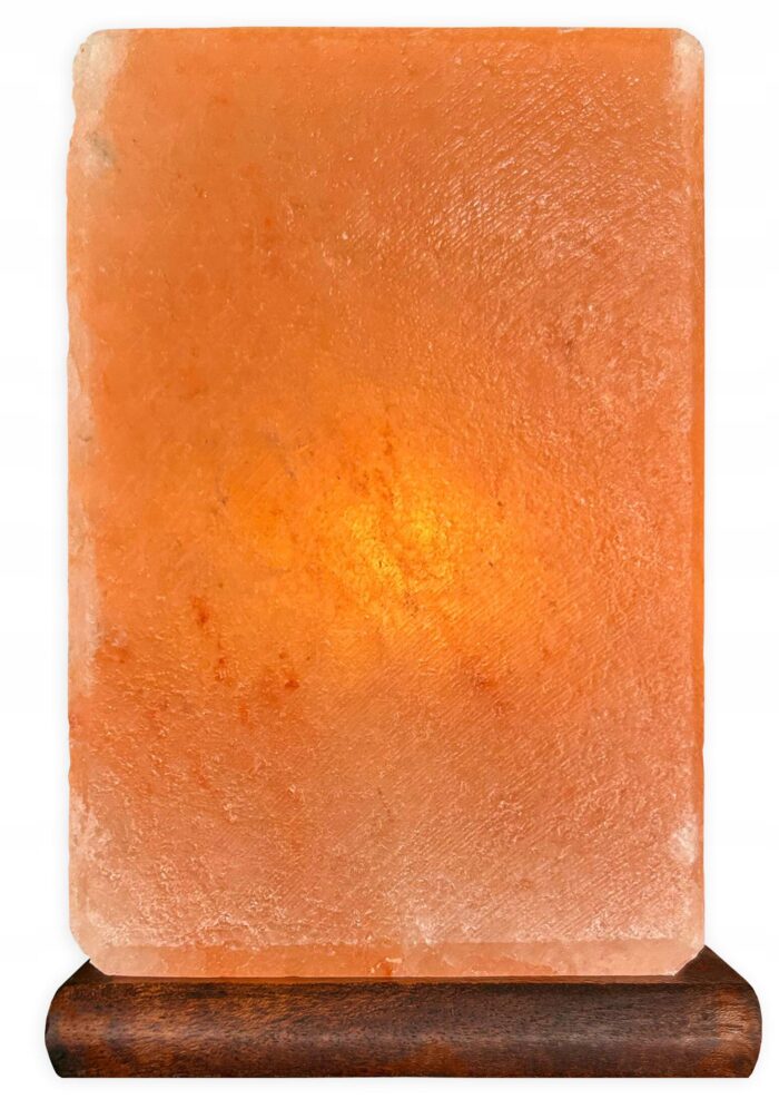 – prostokątna lampka solna z naturalnej soli himalajskiej na naturalnej drewnianej podstawce