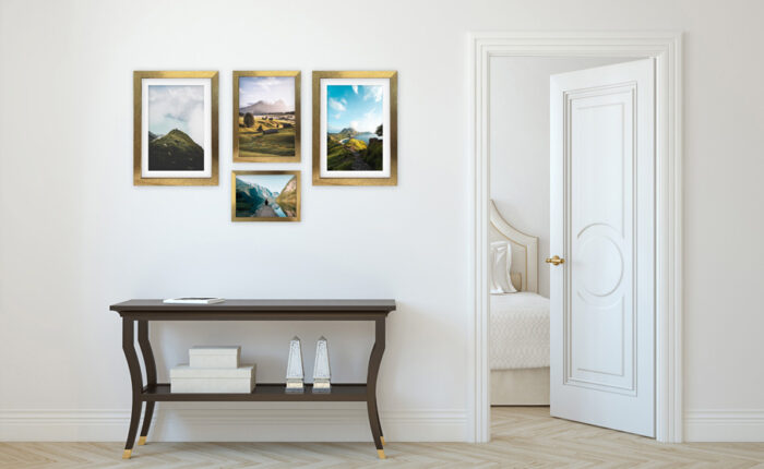 Wystarczy że powiesisz szablon na ścianie, zamocujesz kołki w wyznaczonym miejscu i gotowe – masz idealnie równą, gotową galerie ścienną!