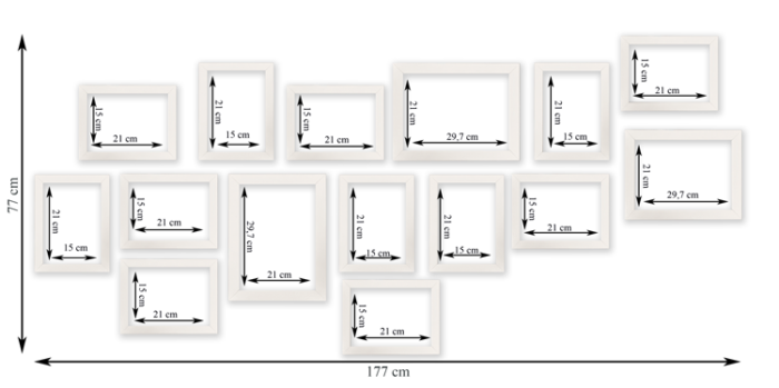 Wystarczy że powiesisz szablon na ścianie, zamocujesz kołki w wyznaczonym miejscu i gotowe – masz idealnie równą, gotową galerie ścienną!