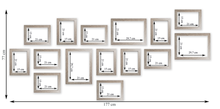 Wystarczy że powiesisz szablon na ścianie, zamocujesz kołki w wyznaczonym miejscu i gotowe – masz idealnie równą, gotową galerie ścienną!