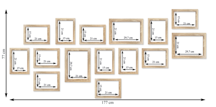 Wystarczy że powiesisz szablon na ścianie, zamocujesz kołki w wyznaczonym miejscu i gotowe – masz idealnie równą, gotową galerie ścienną!