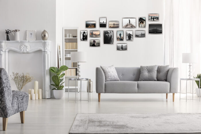 Wystarczy że powiesisz szablon na ścianie, zamocujesz kołki w wyznaczonym miejscu i gotowe – masz idealnie równą, gotową galerie ścienną!