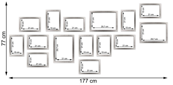 Szablon rzeczywistej wielkości 1:1 sprawia, że bez problemu można odtworzyć prezentowany układ ram, bez potrzeby żmudnego procesu mierzenia i poziomowania.