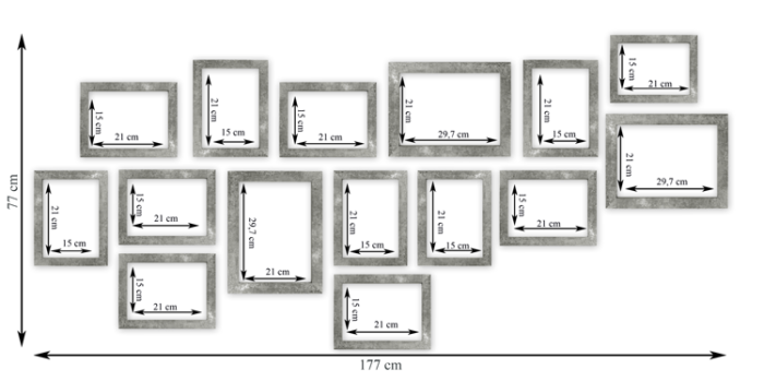 Szablon rzeczywistej wielkości 1:1 sprawia, że bez problemu można odtworzyć prezentowany układ ram, bez potrzeby żmudnego procesu mierzenia i poziomowania.
