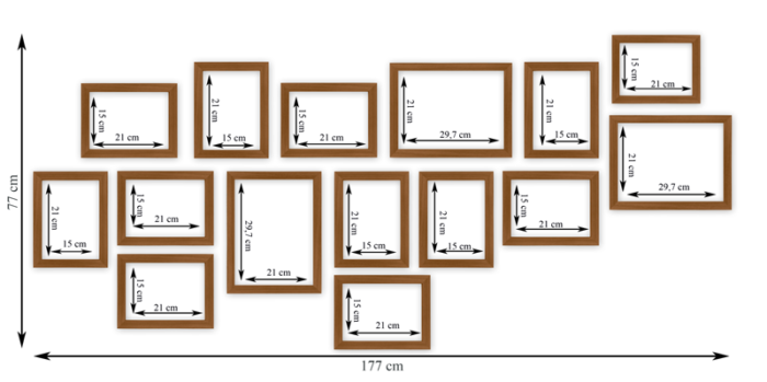 Wystarczy że powiesisz szablon na ścianie, zamocujesz kołki w wyznaczonym miejscu i gotowe – masz idealnie równą, gotową galerie ścienną!