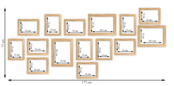 Wystarczy że powiesisz szablon na ścianie, zamocujesz kołki w wyznaczonym miejscu i gotowe – masz idealnie równą, gotową galerie ścienną!