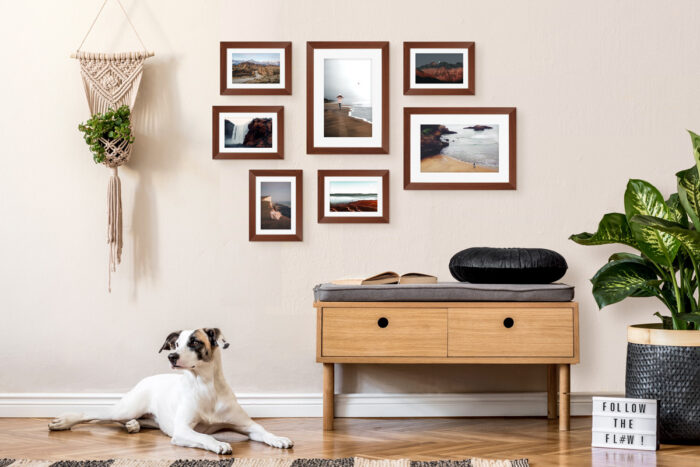 Wystarczy że powiesisz szablon na ścianie, zamocujesz kołki w wyznaczonym miejscu i gotowe – masz idealnie równą, gotową galerie ścienną!