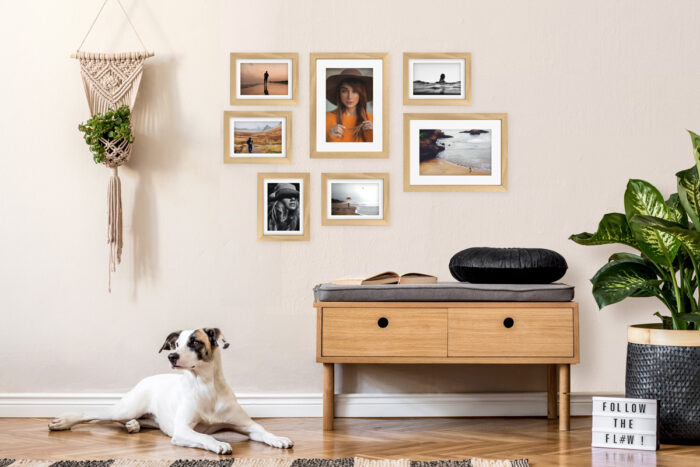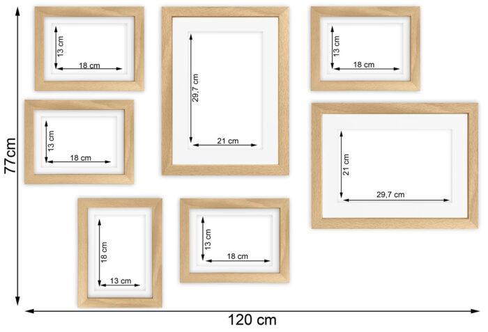 Wystarczy że powiesisz szablon na ścianie, zamocujesz kołki w wyznaczonym miejscu i gotowe – masz idealnie równą, gotową galerie ścienną!