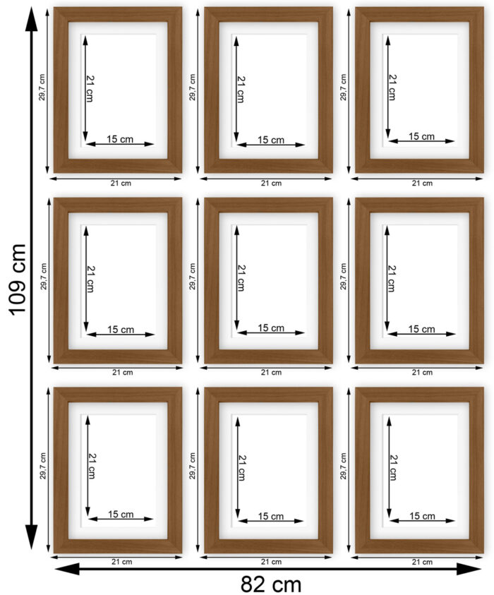 - 9 ramek A4 z passe partout na zdjęcia 15×21