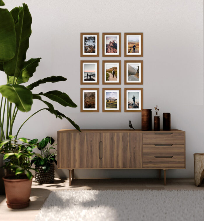 Wystarczy że powiesisz szablon na ścianie, zamocujesz kołki w wyznaczonym miejscu i gotowe – masz idealnie równą, gotową galerie ścienną!