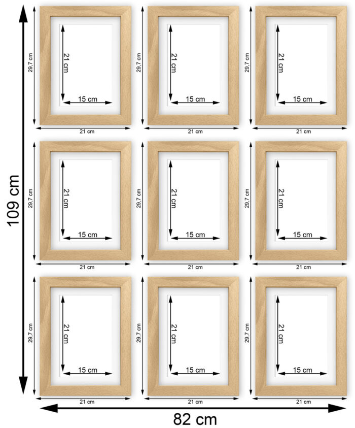 • 9  ramek A4 z passe partout na zdjęcia 15×21
