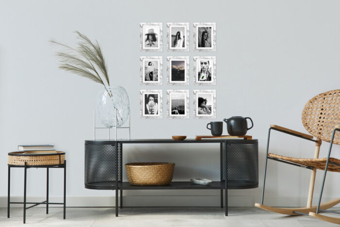 Wystarczy że powiesisz szablon na ścianie, zamocujesz kołki w wyznaczonym miejscu i gotowe – masz idealnie równą, gotową galerie ścienną!