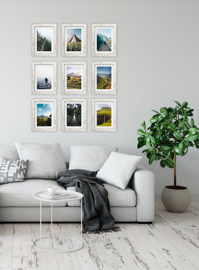 Wystarczy że powiesisz szablon na ścianie, zamocujesz kołki w wyznaczonym miejscu i gotowe – masz idealnie równą, gotową galerie ścienną!