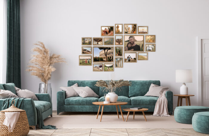 Wystarczy że powiesisz szablon na ścianie, zamocujesz kołki w wyznaczonym miejscu i gotowe – masz idealnie równą, gotową galerie ścienną!