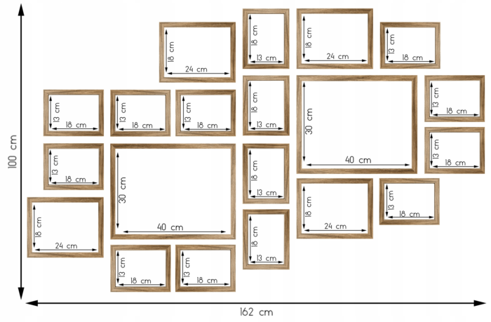Szablon rzeczywistej wielkości 1:1 sprawia, że bez problemu można odtworzyć prezentowany układ ram, bez potrzeby żmudnego procesu mierzenia i poziomowania.