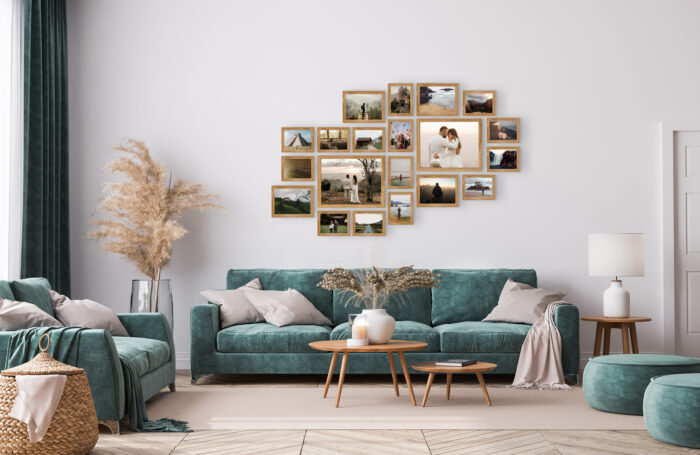 Wystarczy że powiesisz szablon na ścianie, zamocujesz kołki w wyznaczonym miejscu i gotowe – masz idealnie równą, gotową galerie ścienną!