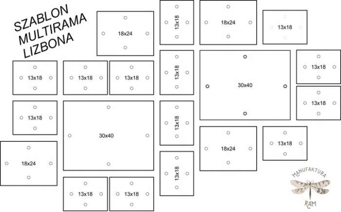 Szablon rzeczywistej wielkości 1:1 sprawia, że bez problemu można odtworzyć prezentowany układ ram, bez potrzeby żmudnego procesu mierzenia i poziomowania.