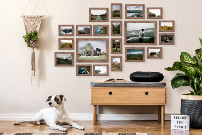Wystarczy że powiesisz szablon na ścianie, zamocujesz kołki w wyznaczonym miejscu i gotowe – masz idealnie równą, gotową galerie ścienną!