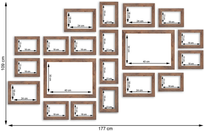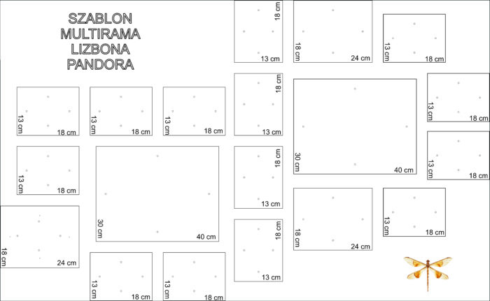 Szablon rzeczywistej wielkości 1:1 sprawia, że bez problemu można odtworzyć prezentowany układ ram, bez potrzeby żmudnego procesu mierzenia i poziomowania.