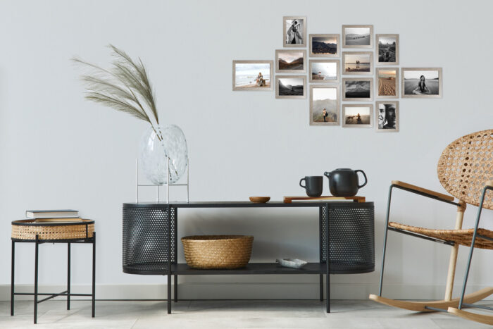 Wystarczy że powiesisz szablon na ścianie, zamocujesz kołki w wyznaczonym miejscu i gotowe – masz idealnie równą, gotową galerie ścienną!