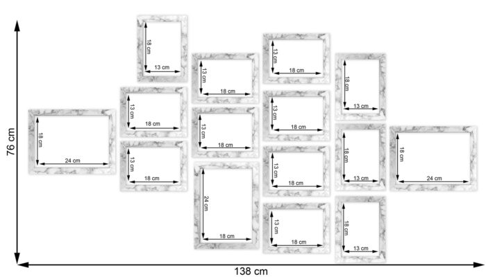 Szablon rzeczywistej wielkości 1:1 sprawia, że bez problemu można odtworzyć prezentowany układ ram, bez potrzeby żmudnego procesu mierzenia i poziomowania.