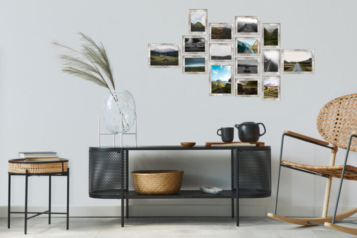 Wystarczy że powiesisz szablon na ścianie, zamocujesz kołki w wyznaczonym miejscu i gotowe – masz idealnie równą, gotową galerie ścienną!