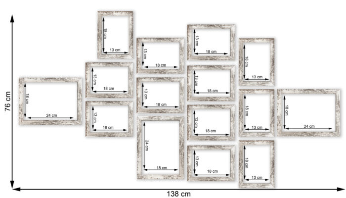 Szablon rzeczywistej wielkości 1:1 sprawia, że bez problemu można odtworzyć prezentowany układ ram, bez potrzeby żmudnego procesu mierzenia i poziomowania.
