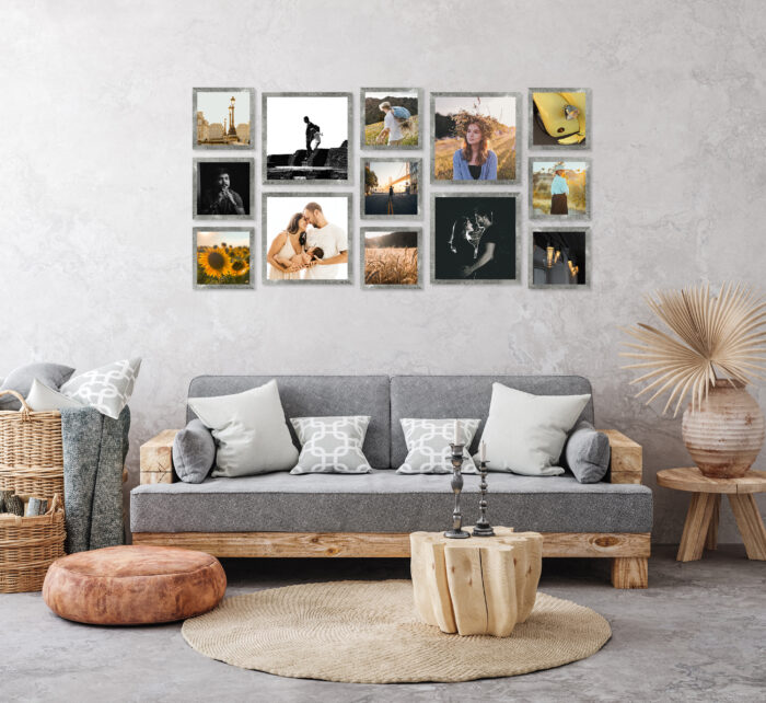 Wystarczy że powiesisz szablon na ścianie, zamocujesz kołki w wyznaczonym miejscu i gotowe – masz idealnie równą, gotową galerie ścienną!