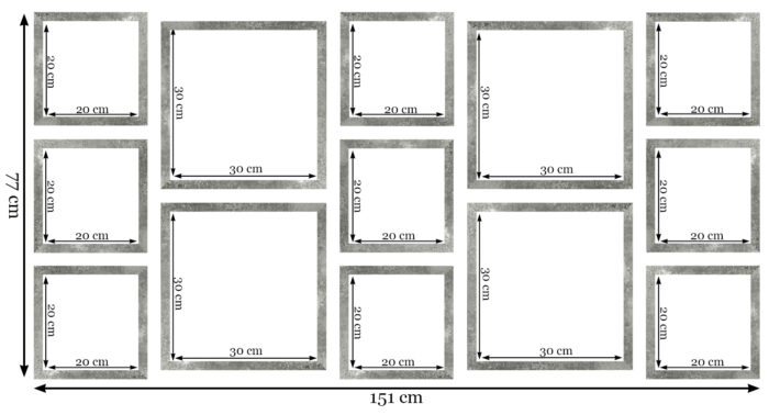 Szablon rzeczywistej wielkości 1:1 sprawia, że bez problemu można odtworzyć prezentowany układ ram, bez potrzeby żmudnego procesu mierzenia i poziomowania.