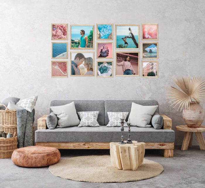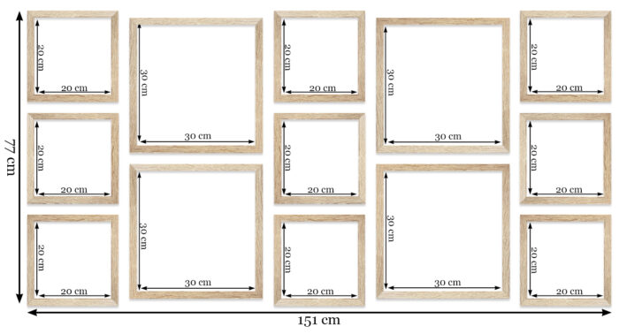 Wystarczy że powiesisz szablon na ścianie, zamocujesz kołki w wyznaczonym miejscu i gotowe – masz idealnie równą, gotową galerie ścienną!