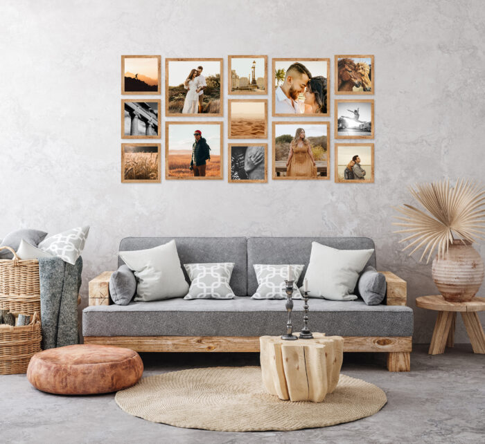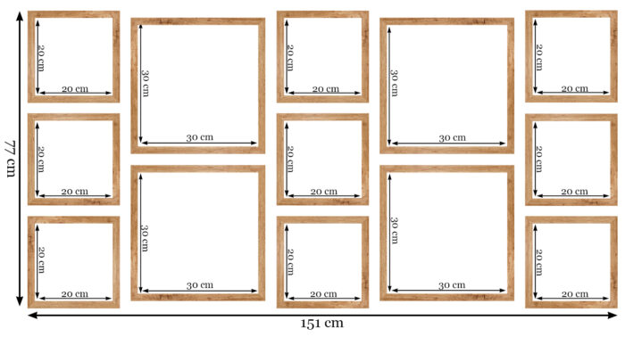 Wystarczy że powiesisz szablon na ścianie, zamocujesz kołki w wyznaczonym miejscu i gotowe – masz idealnie równą, gotową galerie ścienną!