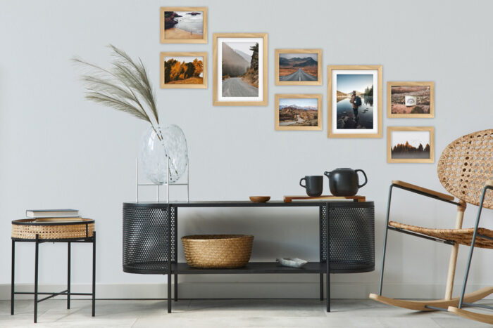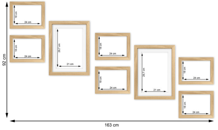 Wystarczy że powiesisz szablon na ścianie, zamocujesz kołki w wyznaczonym miejscu i gotowe – masz idealnie równą, gotową galerie ścienną!