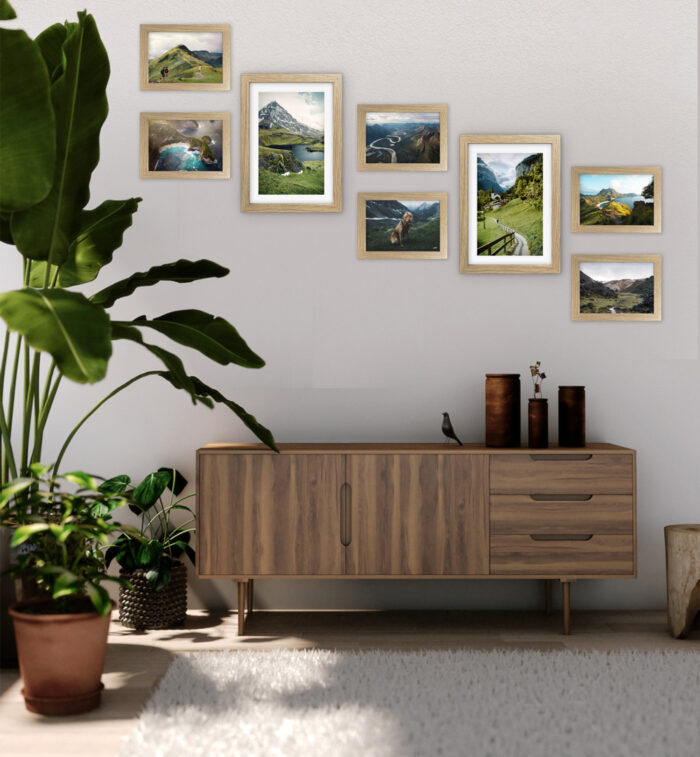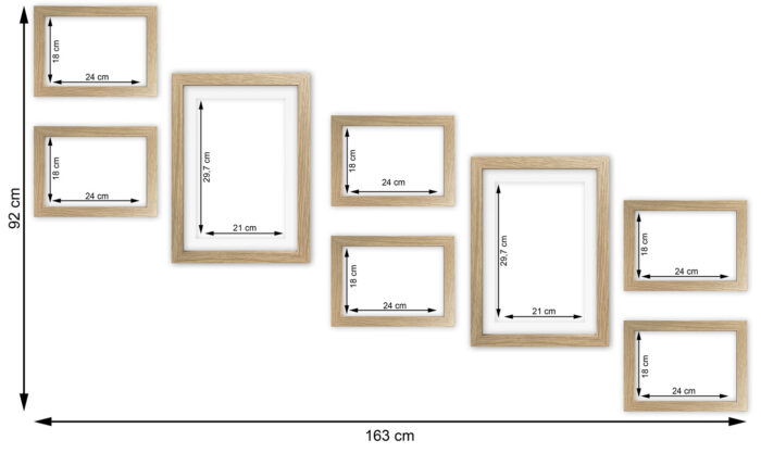 Wystarczy że powiesisz szablon na ścianie, zamocujesz kołki w wyznaczonym miejscu i gotowe – masz idealnie równą, gotową galerie ścienną!