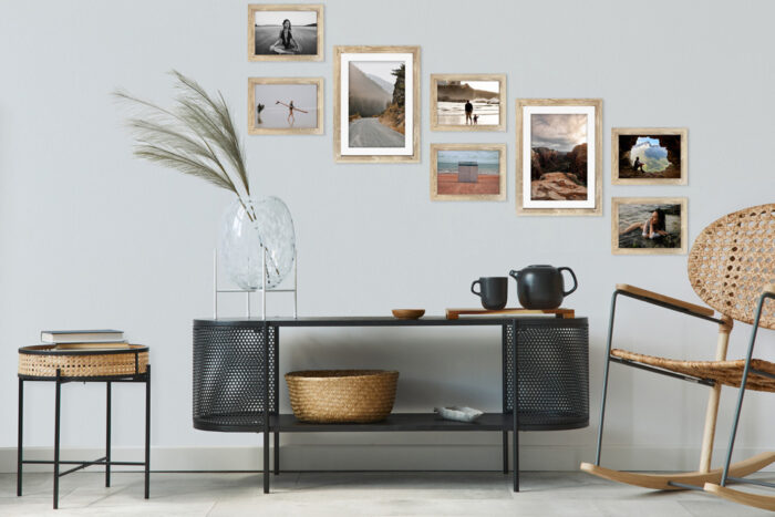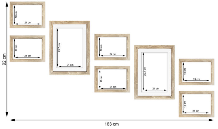 Wystarczy że powiesisz szablon na ścianie, zamocujesz kołki w wyznaczonym miejscu i gotowe – masz idealnie równą, gotową galerie ścienną!