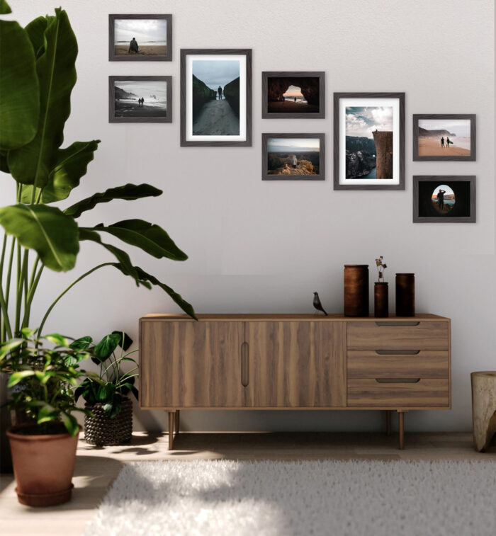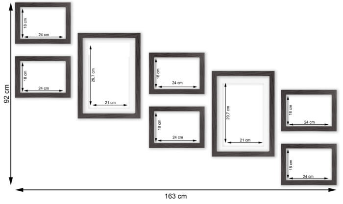 Wystarczy że powiesisz szablon na ścianie, zamocujesz kołki w wyznaczonym miejscu i gotowe – masz idealnie równą, gotową galerie ścienną!