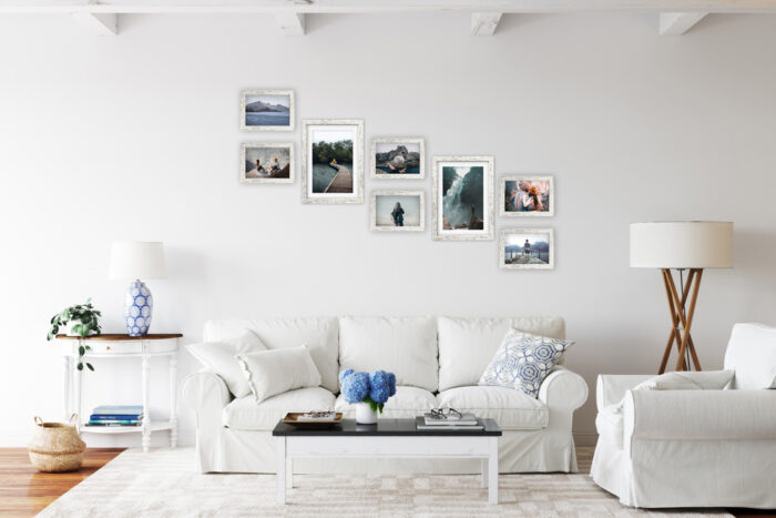 Wystarczy że powiesisz szablon na ścianie, zamocujesz kołki w wyznaczonym miejscu i gotowe – masz idealnie równą, gotową galerie ścienną!