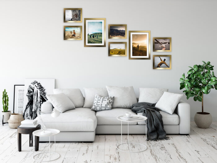 Wystarczy że powiesisz szablon na ścianie, zamocujesz kołki w wyznaczonym miejscu i gotowe – masz idealnie równą, gotową galerie ścienną!