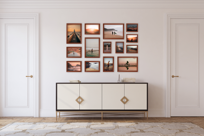 Wystarczy że powiesisz szablon na ścianie, zamocujesz kołki w wyznaczonym miejscu i gotowe – masz idealnie równą, gotową galerie ścienną!