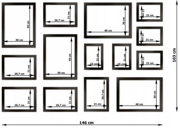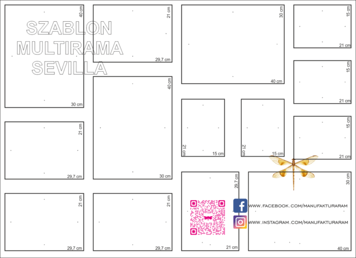 Szablon rzeczywistej wielkości 1:1 sprawia, że bez problemu można odtworzyć prezentowany układ ram, bez potrzeby żmudnego procesu mierzenia i poziomowania.