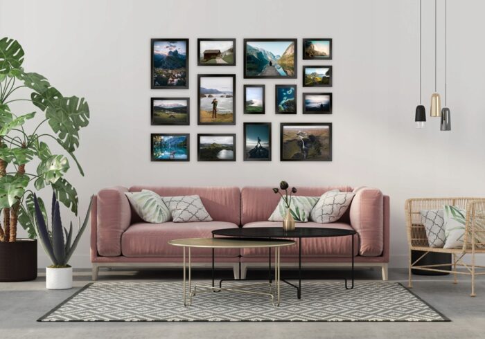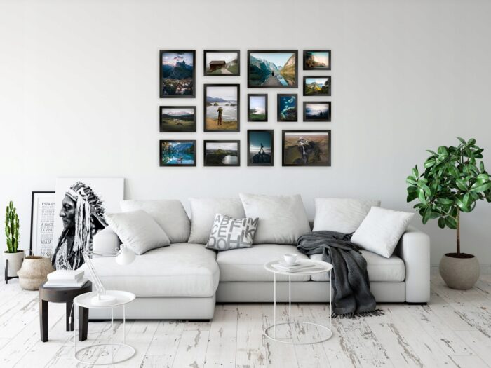Wystarczy że powiesisz szablon na ścianie, zamocujesz kołki w wyznaczonym miejscu i gotowe – masz idealnie równą, gotową galerie ścienną!