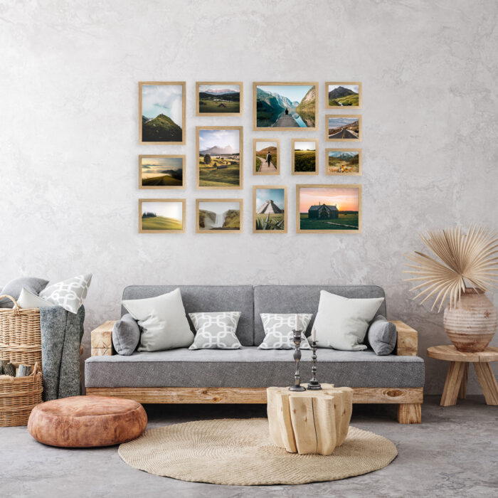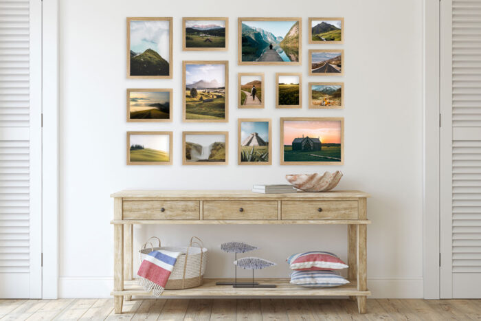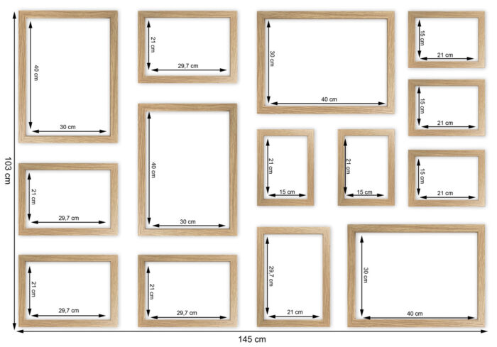 Wystarczy że powiesisz szablon na ścianie, zamocujesz kołki w wyznaczonym miejscu i gotowe – masz idealnie równą, gotową galerie ścienną!