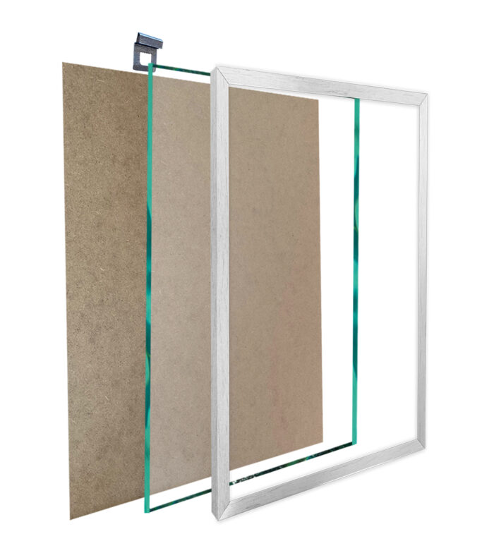 Każda z naszych ramek zawiera tył w postaci płyty HDF i uniwersalną zawieszką, która umożliwia zawieszenie ramki zarówno w pionie, jak i poziomie.