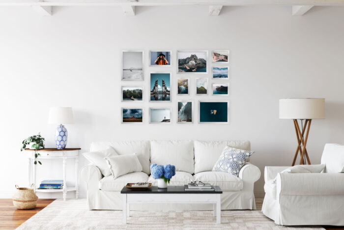 Wystarczy że powiesisz szablon na ścianie, zamocujesz kołki w wyznaczonym miejscu i gotowe – masz idealnie równą, gotową galerie ścienną!