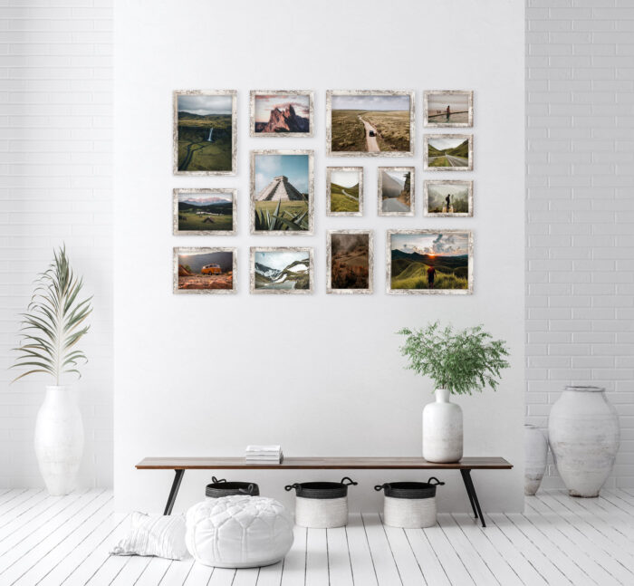 Wystarczy że powiesisz szablon na ścianie, zamocujesz kołki w wyznaczonym miejscu i gotowe – masz idealnie równą, gotową galerie ścienną!