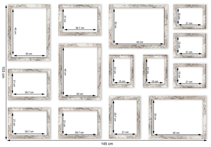 Szablon rzeczywistej wielkości 1:1 sprawia, że bez problemu można odtworzyć prezentowany układ ram, bez potrzeby żmudnego procesu mierzenia i poziomowania.